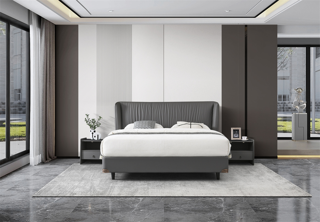 在平稳中追求突破,在突破中静心沉淀。 整体色调以深色为主,结合现代软包,增加舒适感和现代感。经典百搭的色彩和简约的造型,没有太多的造作、修饰与约束。