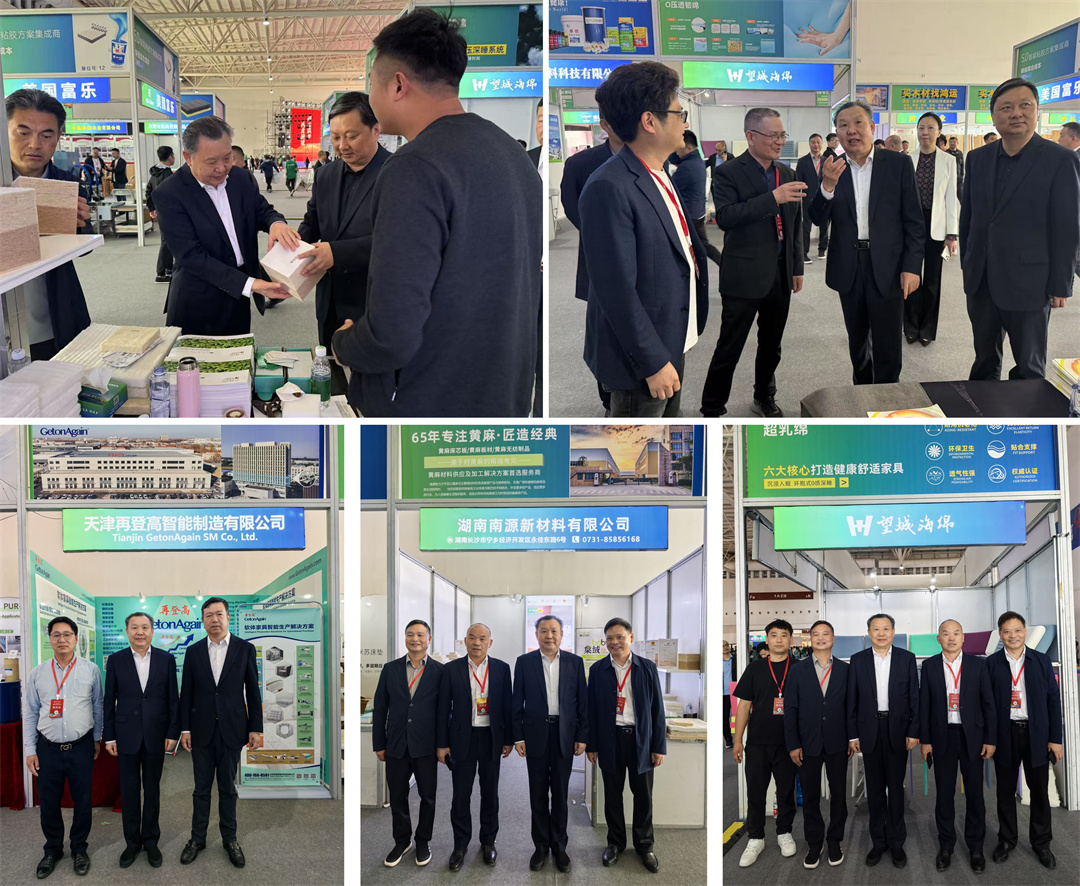 会议期间组织了软体家具原辅材料及设备展示会,与会领导嘉宾参观展会,走访天津再登高、湖南南源、望城海绵等展位,交流家居产业链融合发展成果和趋势。