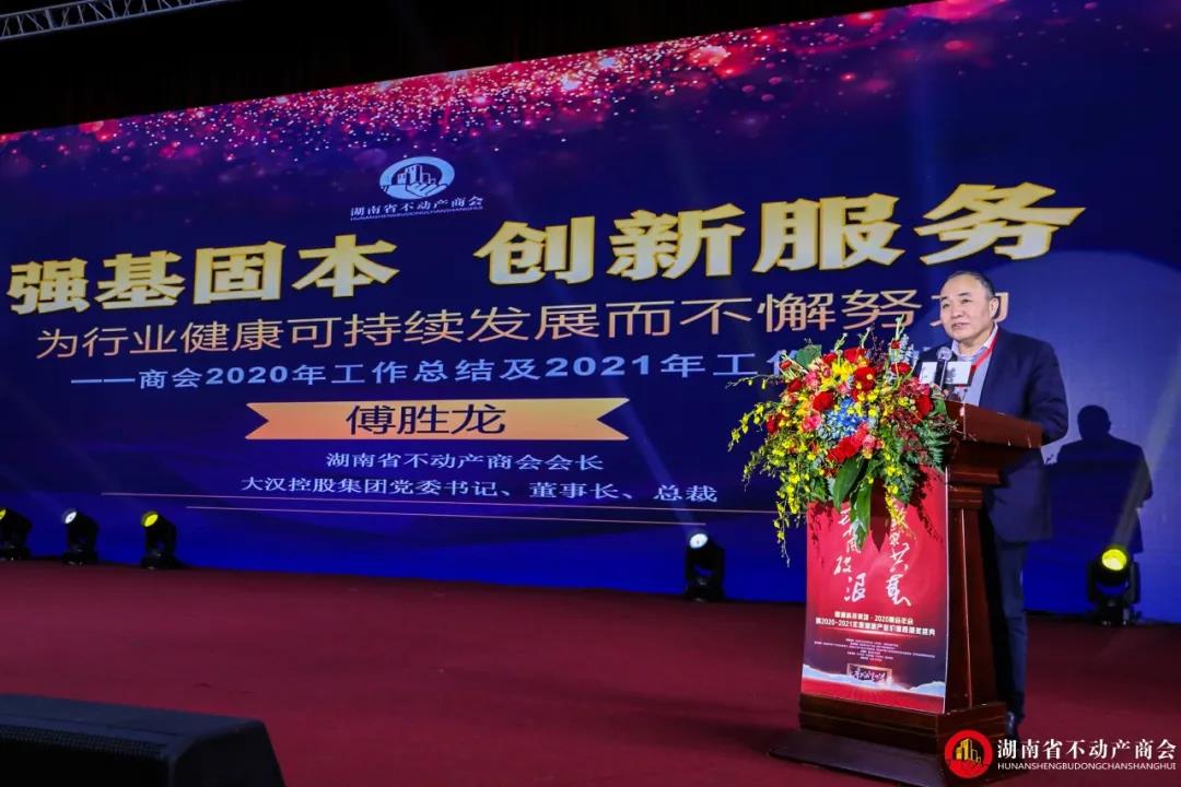 湖南省不动产商会会长、大汉控股集团党委书记、董事长、总裁傅胜龙先生向全体会员做了商会2020年度工作总结报告及2021展望,他表示,2021年,商会将在省工商联、省民政厅的领导下同心共进,开拓拼搏,为促进行业的健康发展而不懈努力。