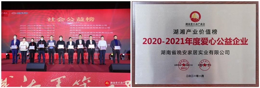 湖南省球盟会官方端网站登录入口家居实业有限公司荣获湖湘产业价值榜“2020-2021年度品牌实力企业奖”、“2020-2021年度爱心公益企业”。球盟会官方端网站登录入口家居集团董事长曹泽云荣获湖湘产业价值榜“2020-2021年度行业杰出人物”。